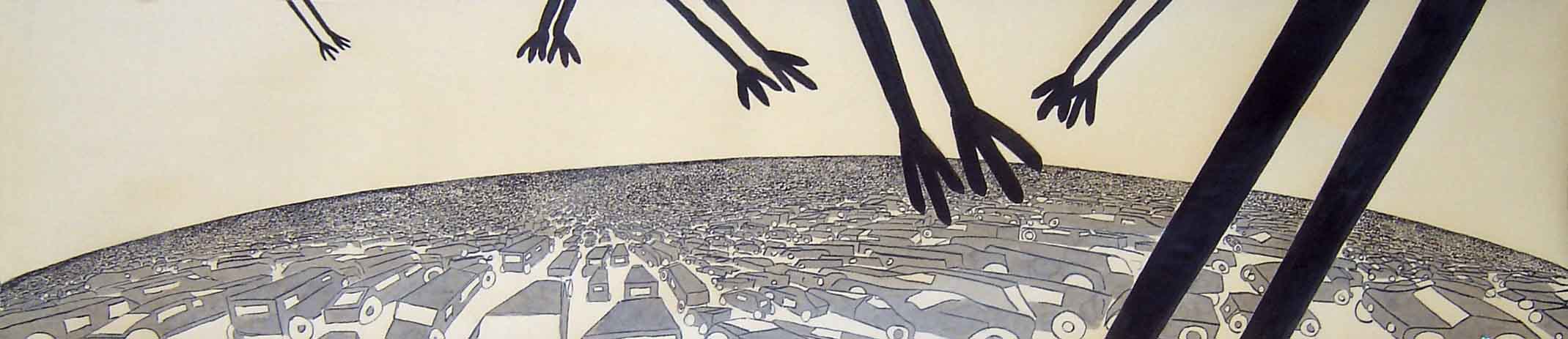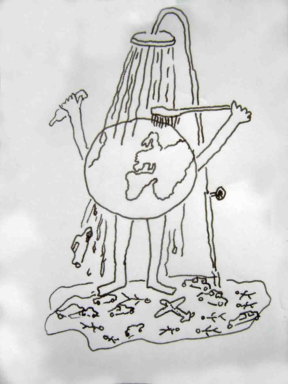 EARTHSHOWER. Ink on paper. 50 x 85 cm. 2011.