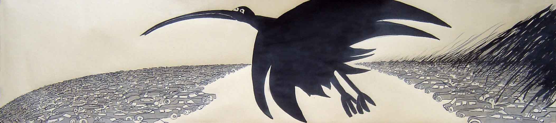 JUST BEFORE THE BRIDGE II. Ink on paper, 180 x 50 cm. 2011.